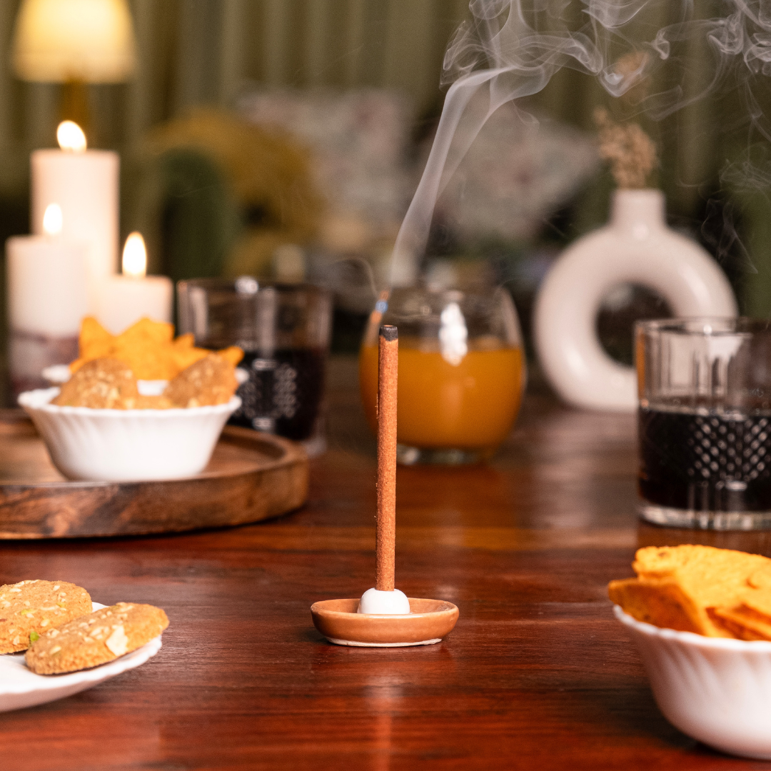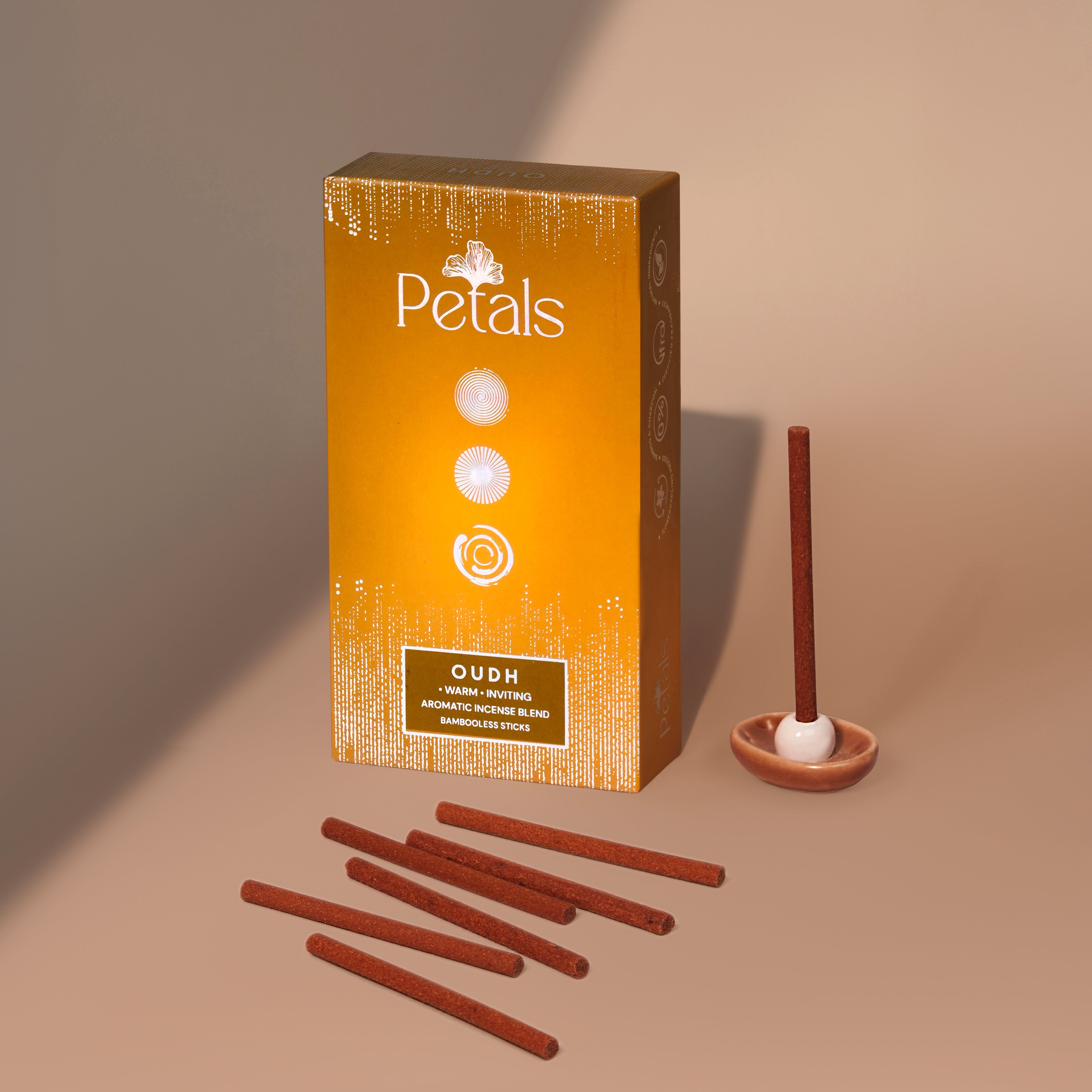 oudh is our sense of occasion without the fuss. we light a stick while the room changes tone from day to night. lamps on. music low. glasses and small plates find their places. the first breath brings a calm warmth that makes everything feel considered. you straighten the cushions, clear the table, send the last message that says come by after seven. there is time, and it moves at a friendly pace.