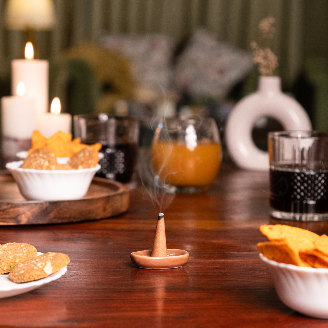 oudh is our sense of occasion without the fuss. we light a stick while the room changes tone from day to night. lamps on. music low. glasses and small plates find their places. the first breath brings a calm warmth that makes everything feel considered. you straighten the cushions, clear the table, send the last message that says come by after seven. there is time, and it moves at a friendly pace.