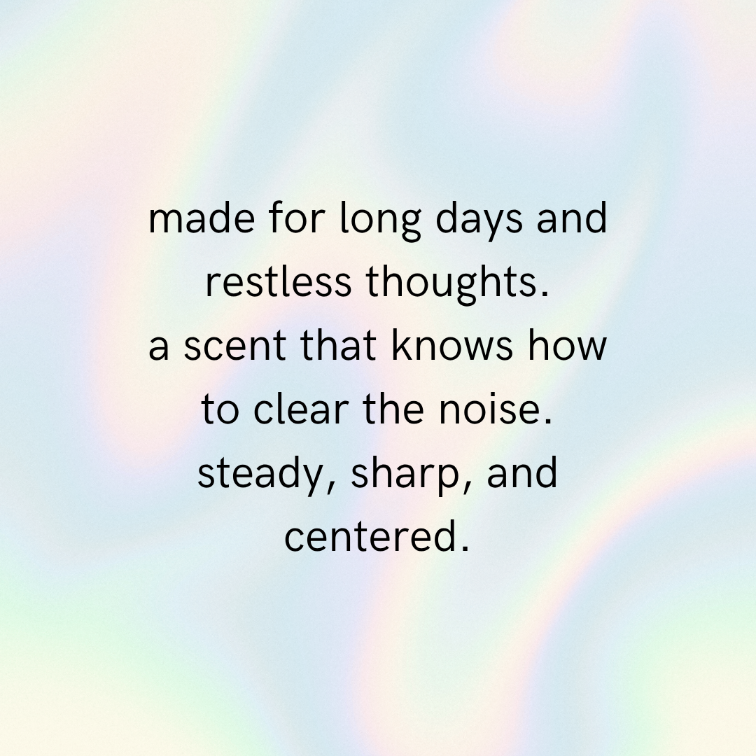 dry, woody accord with a clean, steady finish. clear and grounding.